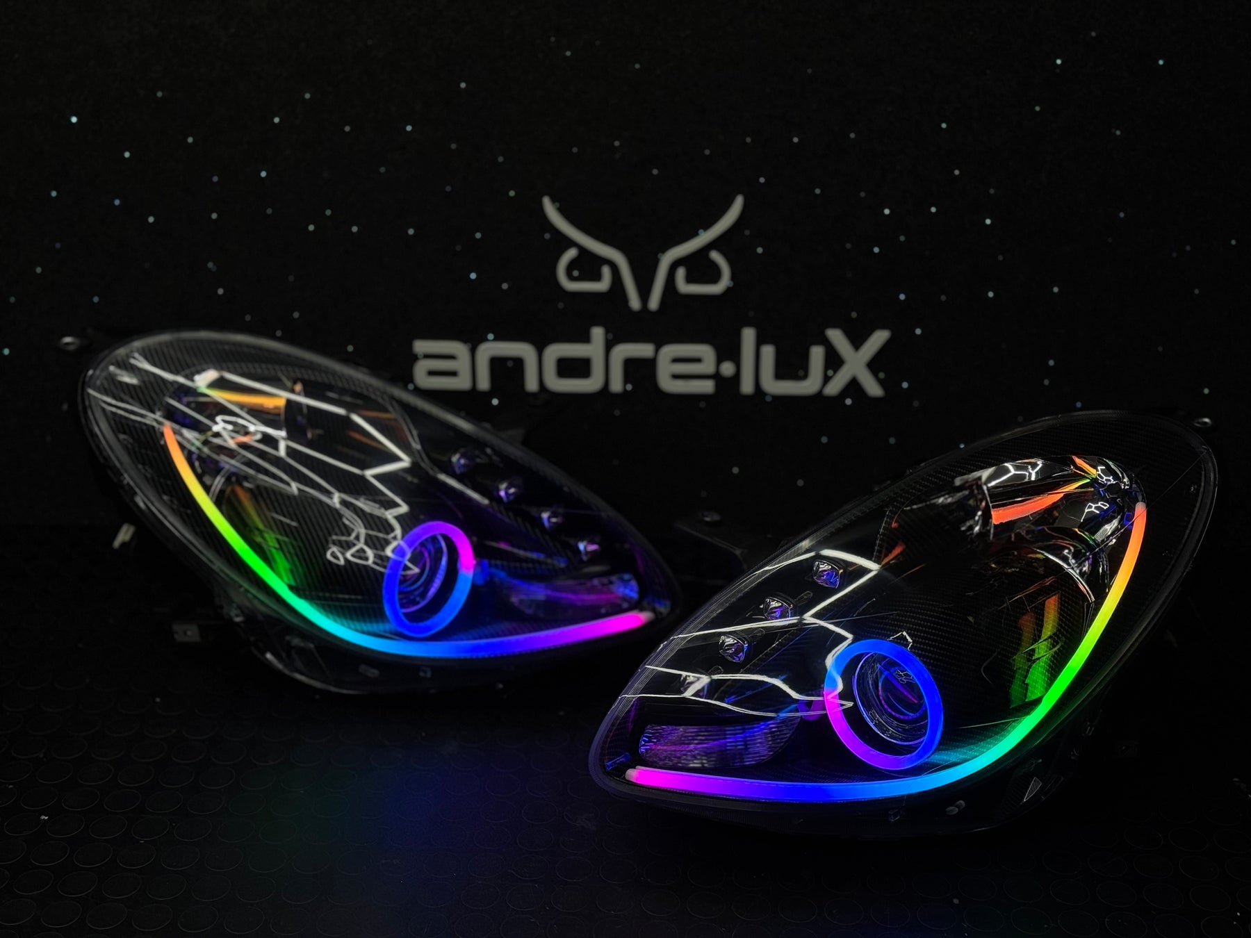 Scegliendo l'opzione RGB avrai angel eyes e strip led con colori statici e giochi di colore. Sarà controllato tutto dal telecomando in dotazione.